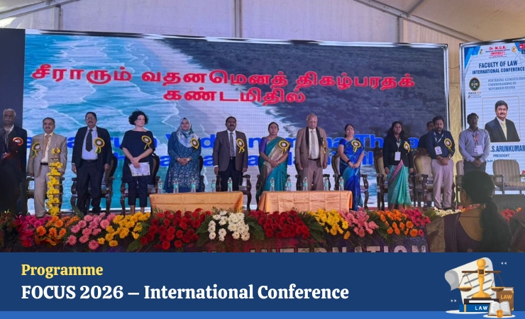 The Faculty of Law, Dr. M.G.R. Educational and Research Institute, Chennai successfully organized the International Conference on “Fostering Constitutional Understanding in Sovereign States (FOCUS 2026)” on 6th and 7th February 2026. The conference brought together distinguished academicians, legal professionals, and scholars to discuss contemporary developments in constitutionalism.
