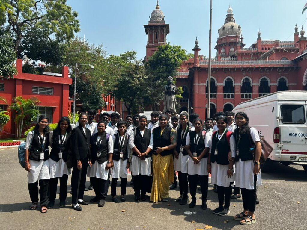 The Faculty of Law, Dr. M.G.R. Educational and Research Institute, Chennai, successfully organized a three-day educational visit to the High Court of Madras on 8th April 2026 for final-year students (B.Com. LL.B. and B.A. LL.B., 2021 batch) as part of the High Court Internship Programme.