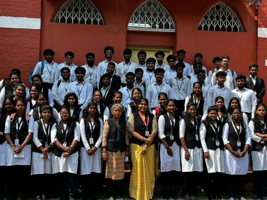 The visit was coordinated by Dr. M. Amara, Deputy Head, and accompanied by Mrs. N. Uma Chithra and Ms. L. Ranjitha, Assistant Professors, who guided the students throughout this enriching experience.